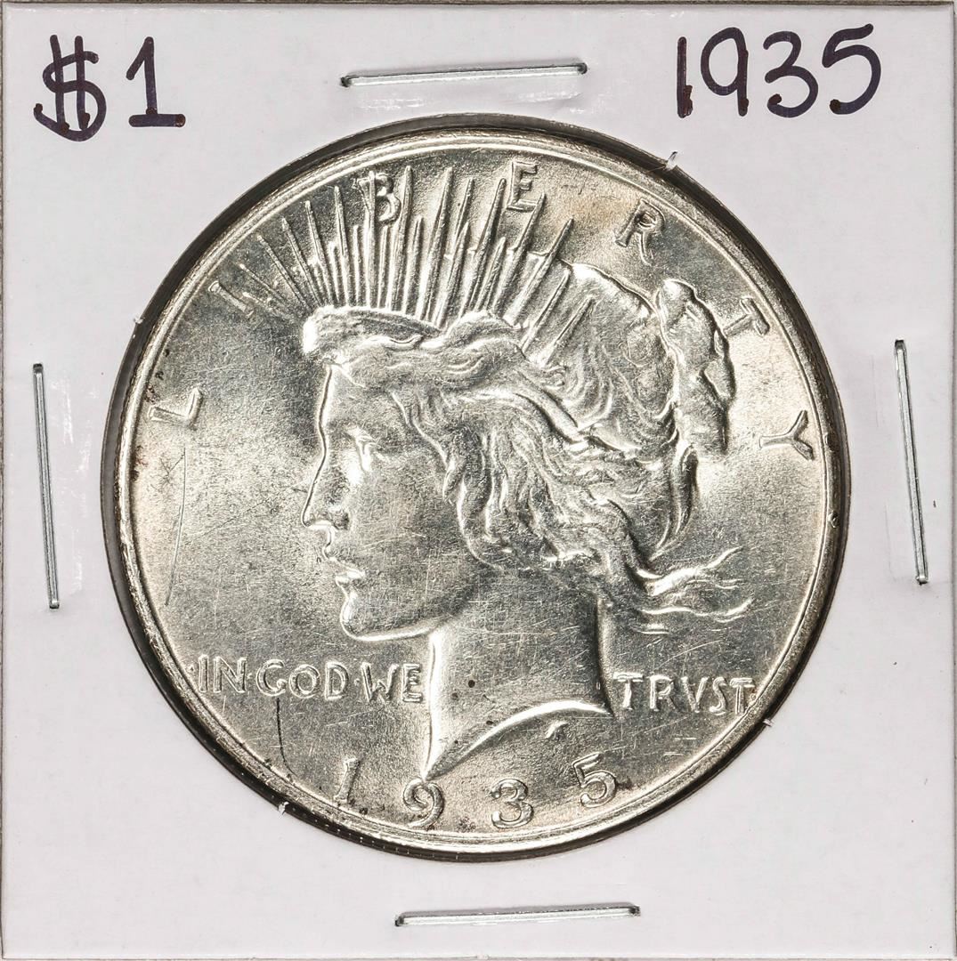 One 1935 $1 Peace Silver Dollar Coin.