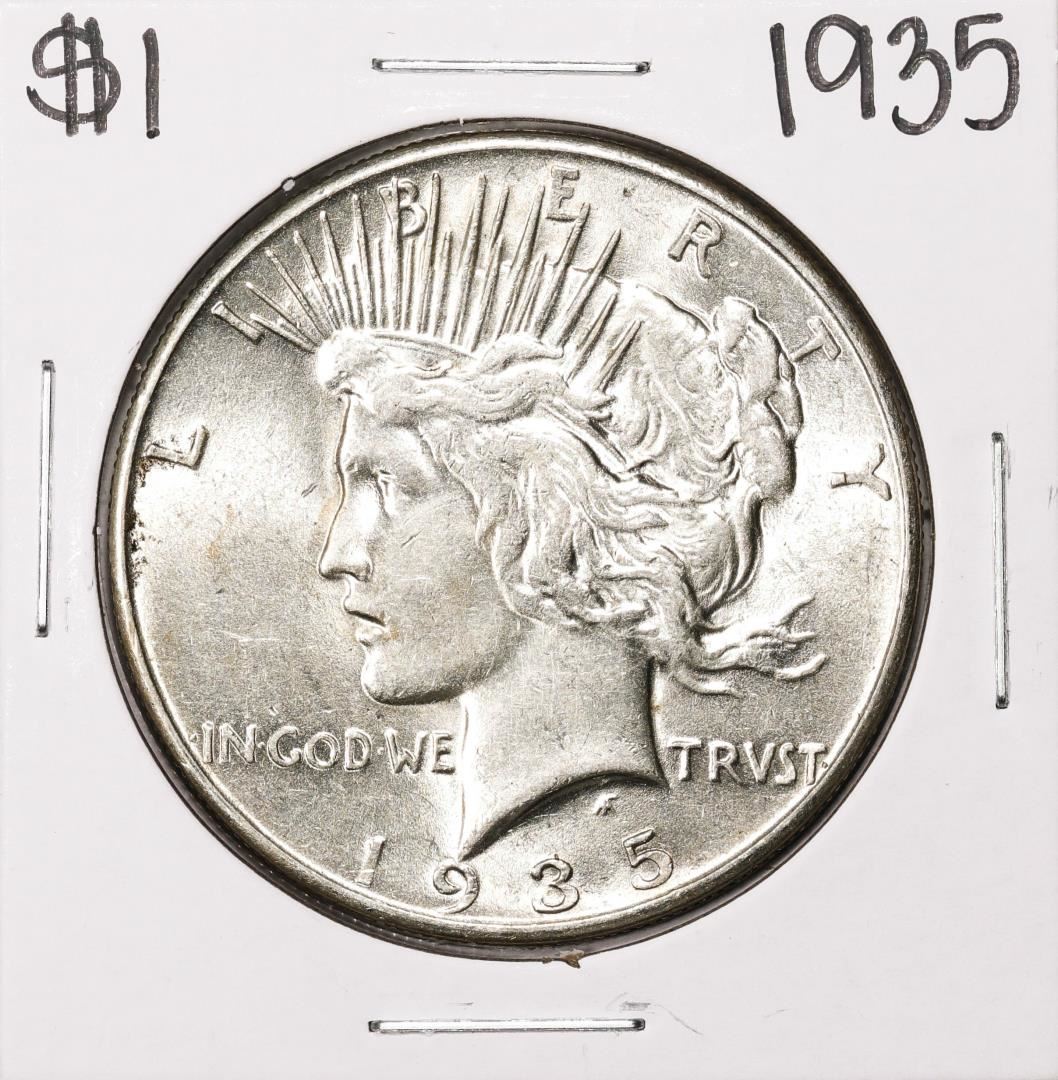 One 1935 $1 Peace Silver Dollar Coin.