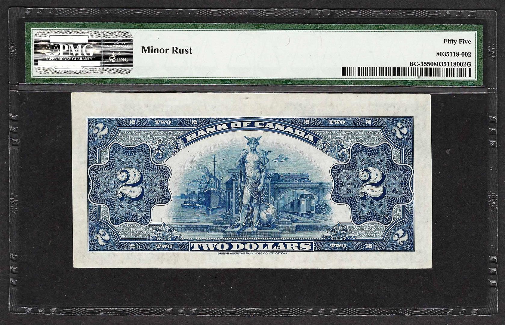 One 1935 $2 Bank of Canada Note English BC-3 PMG About Uncirculated 55. PMG Certified.