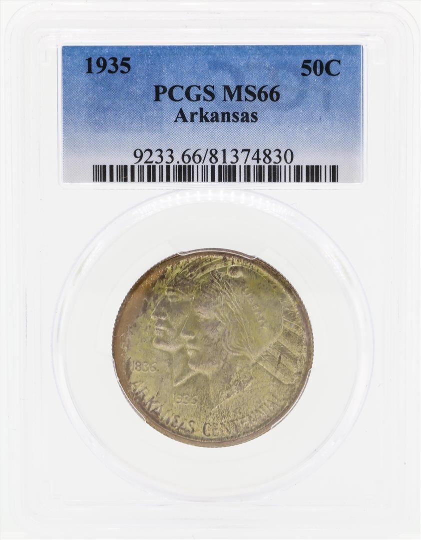 One 1935 Arkansas Commemorative Half Dollar Coin PCGS MS66. PCGS Graded.