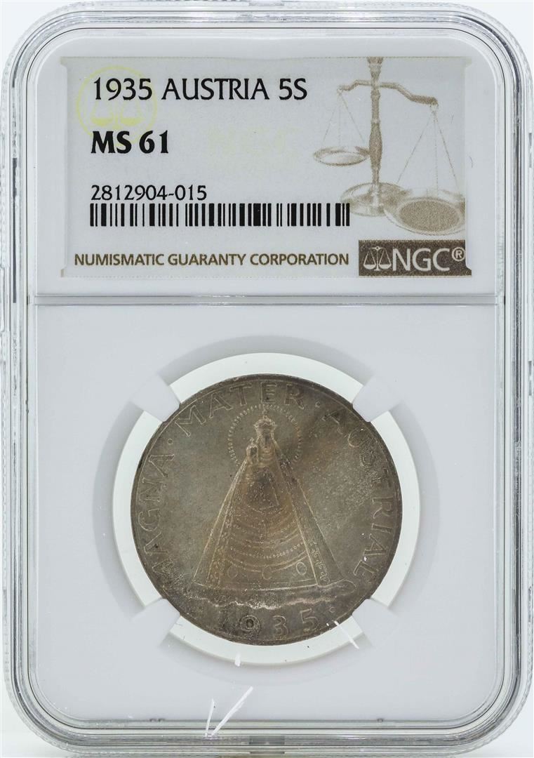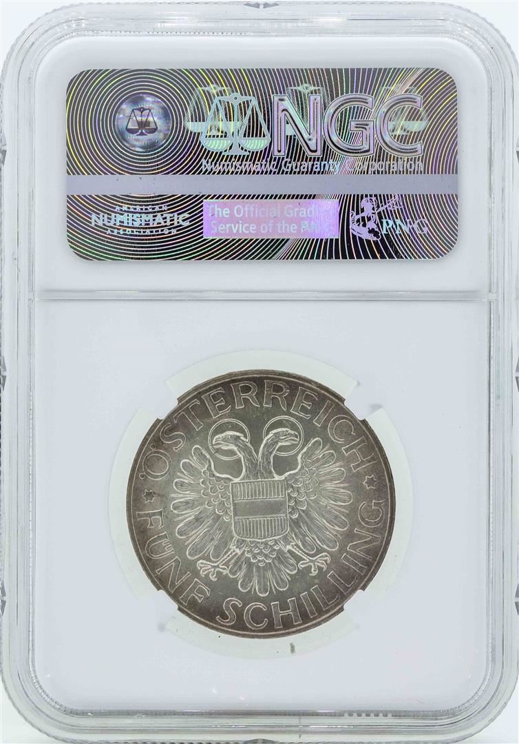One 1935 Austria 5 Shillings Coin NGC MS61. NGC Certified.