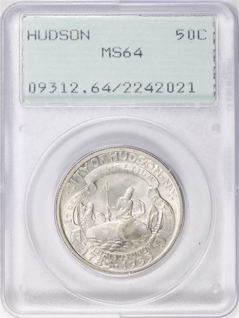 One 1935 Hudson Commemorative Half Dollar Coin PCGS MS64 Green Rattler Holder. PCGS Graded.