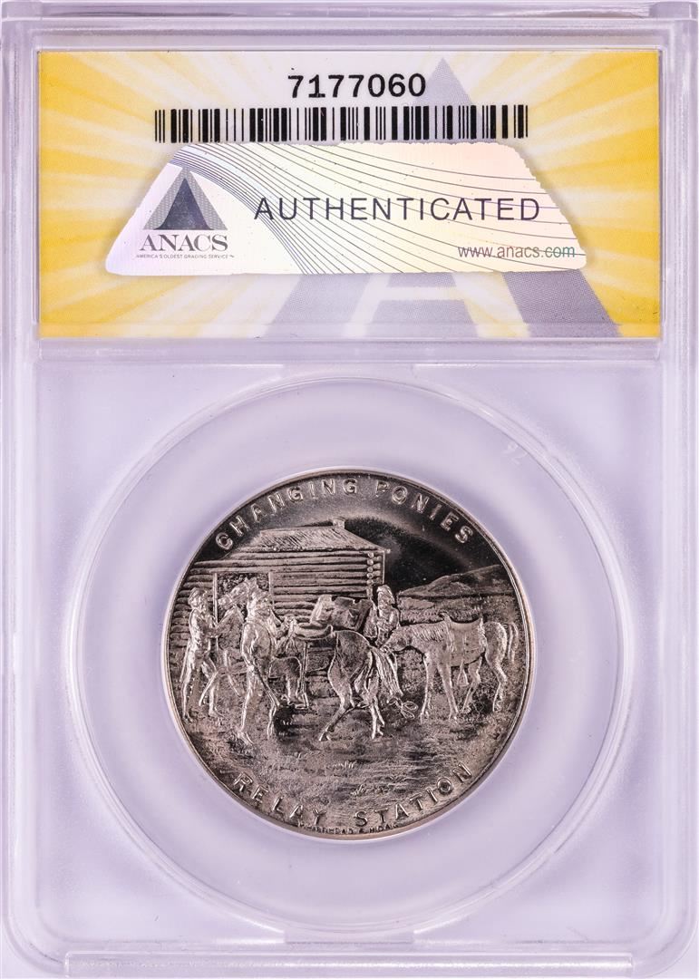 One 1935 Pony Express Diamond Jubilee Relay Station Medal ANACS MS67. ANACS Certified.