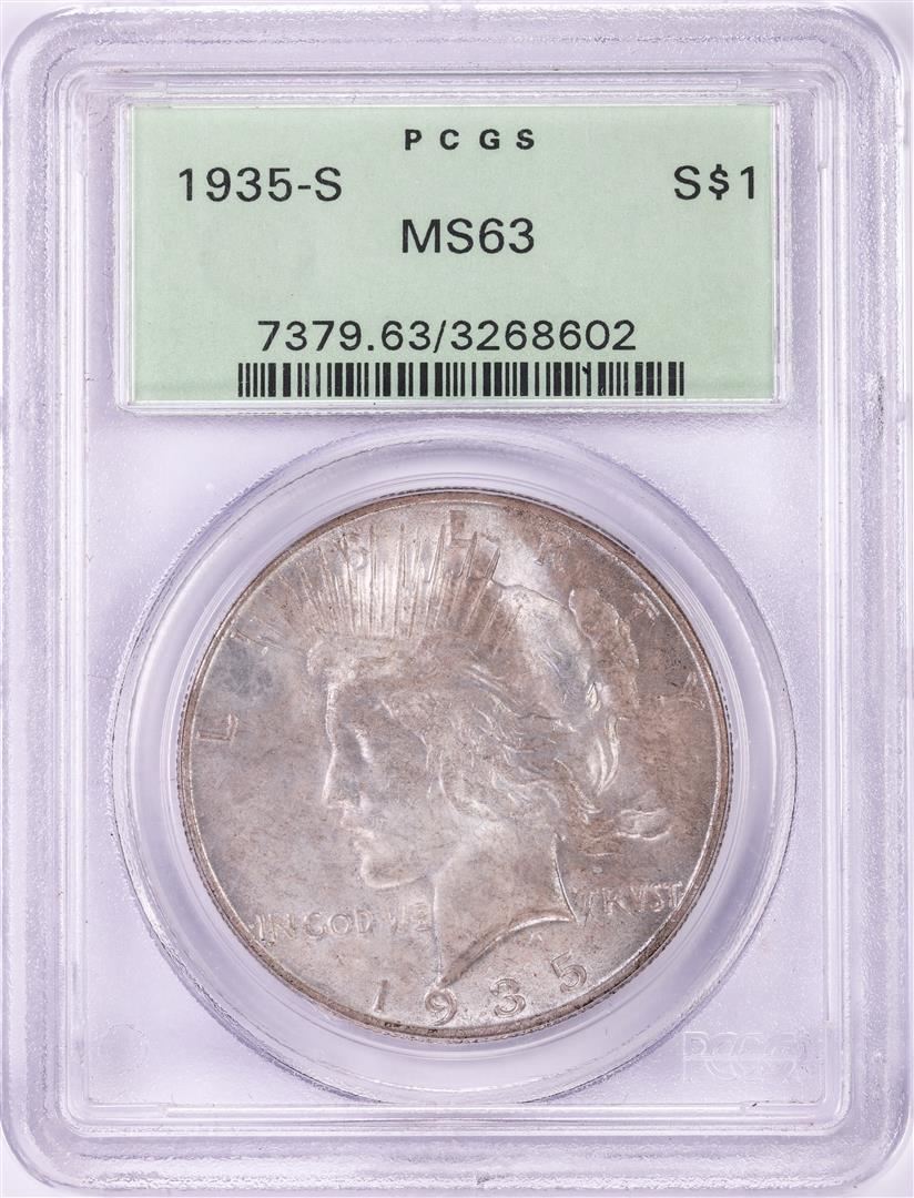 1935-S $1 Peace Silver Dollar Coin PCGS MS63 Old Green Holder