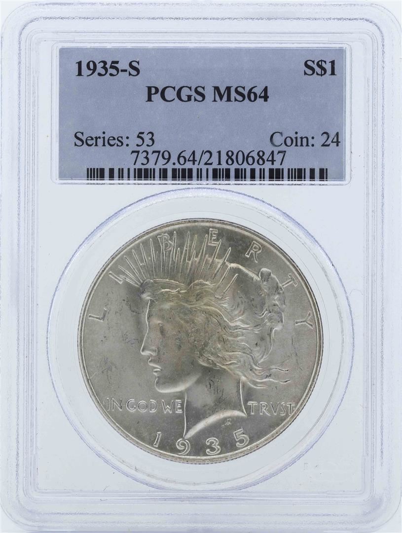 One 1935-S $1 Peace Silver Dollar Coin PCGS MS64. PCGS Graded.