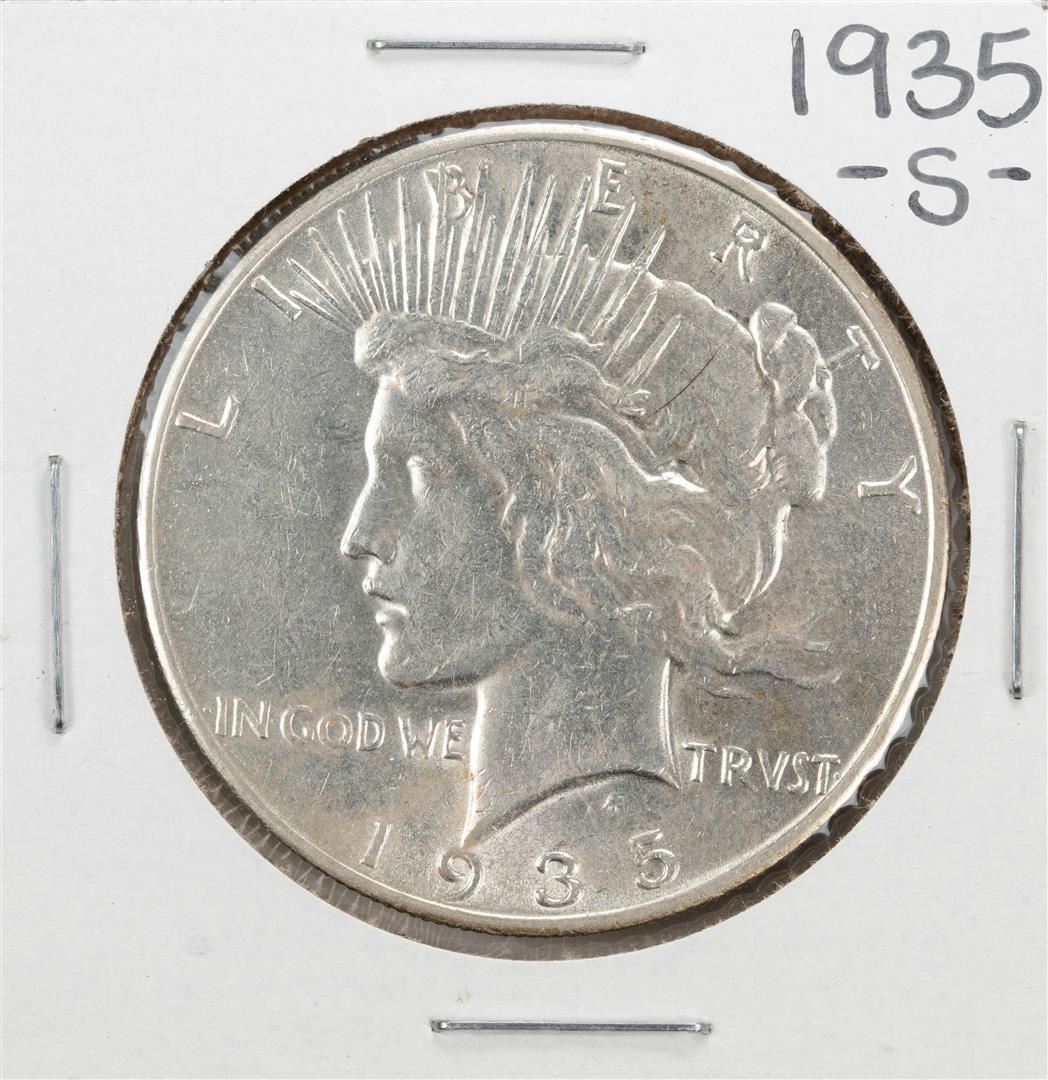 One 1935-S $1 Peace Silver Dollar Coin.