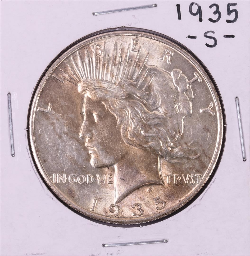 One 1935-S $1 Peace Silver Dollar Coin.