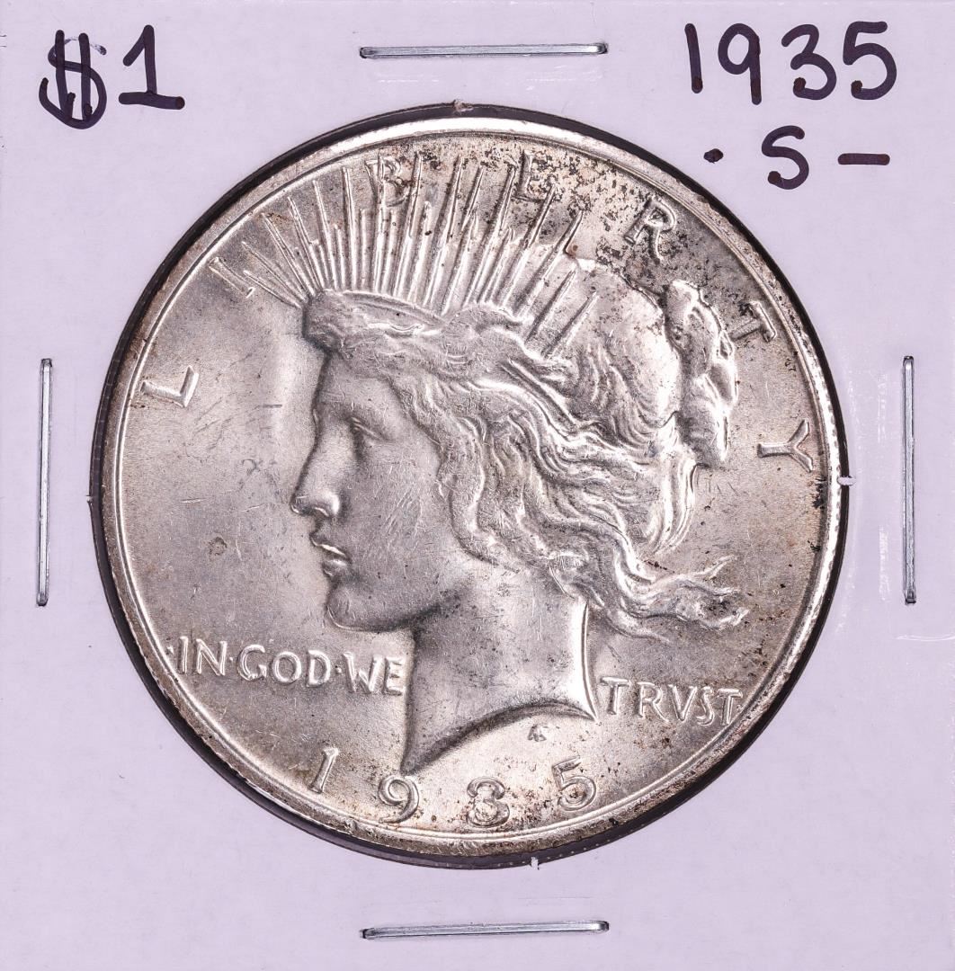One 1935-S $1 Peace Silver Dollar Coin.