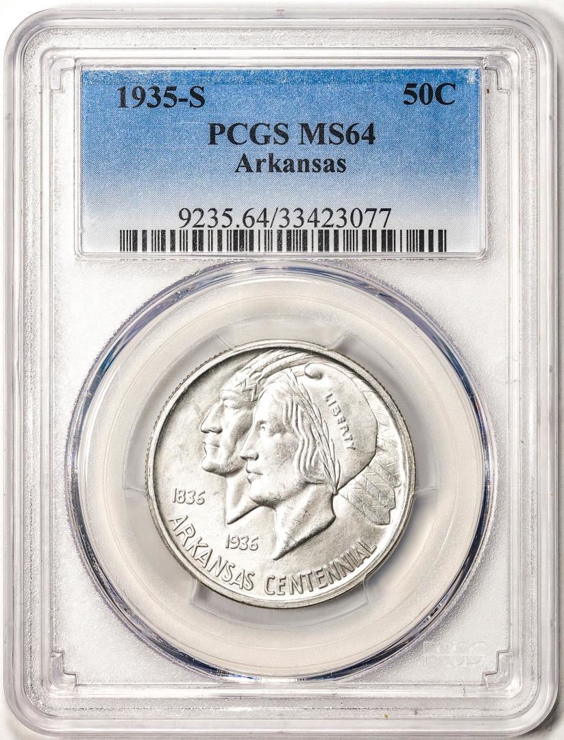 One 1935-S Arkansas Centennial Commemorative Half Dollar Coin PCGS MS64. PCGS Graded.
