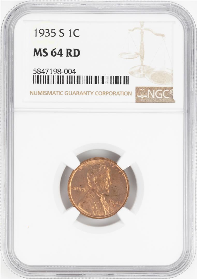 One 1935-S Lincoln Wheat Cent Coin NGC MS64RD. NGC Certified.