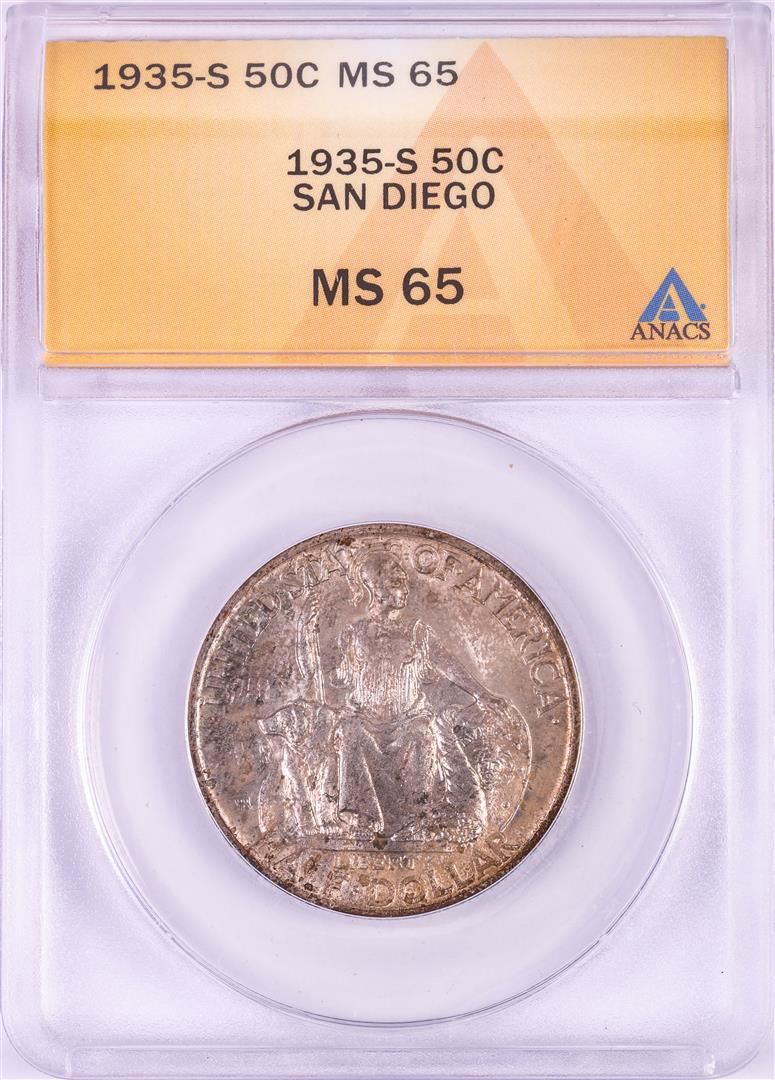 1935-S San Diego Commemorative Half Dollar Coin ANACS MS65