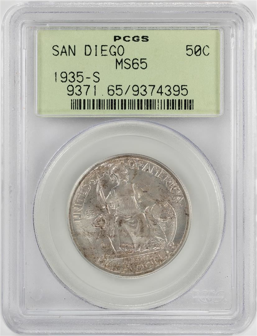 One 1935-S San Diego Commemorative Half Dollar Coin PCGS MS65 OGH. PCGS Graded.