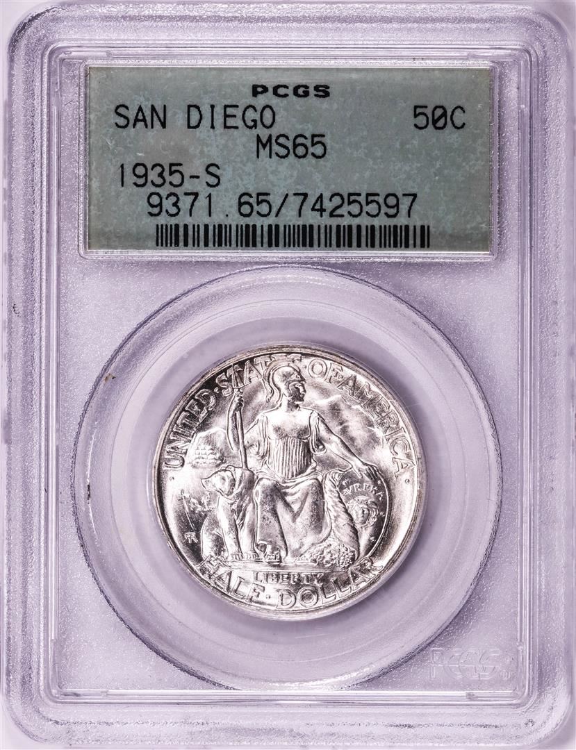 1935-S San Diego Commemorative Half Dollar Coin PCGS MS65 Old Green Holder