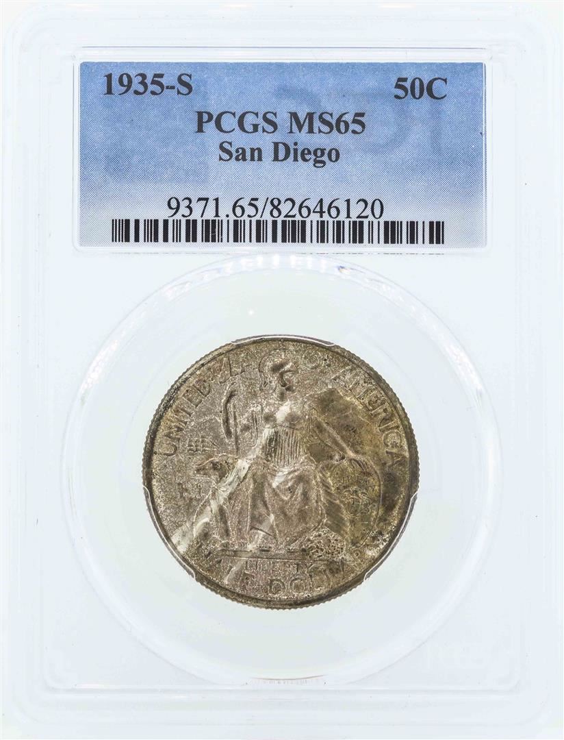 One 1935-S San Diego Commemorative Half Dollar Coin PCGS MS65. PCGS Graded.