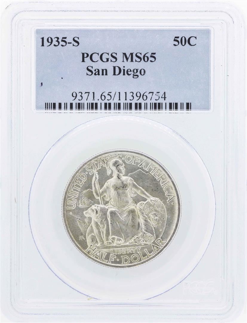 One 1935-S San Diego Commemorative Half Dollar Coin PCGS MS65. PCGS Graded.