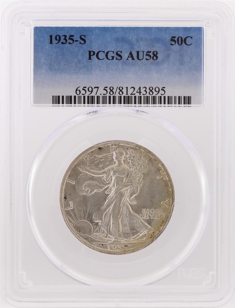 One 1935-S Walking Liberty Half Dollar Silver Coin PCGS Graded AU58. PCGS Graded.