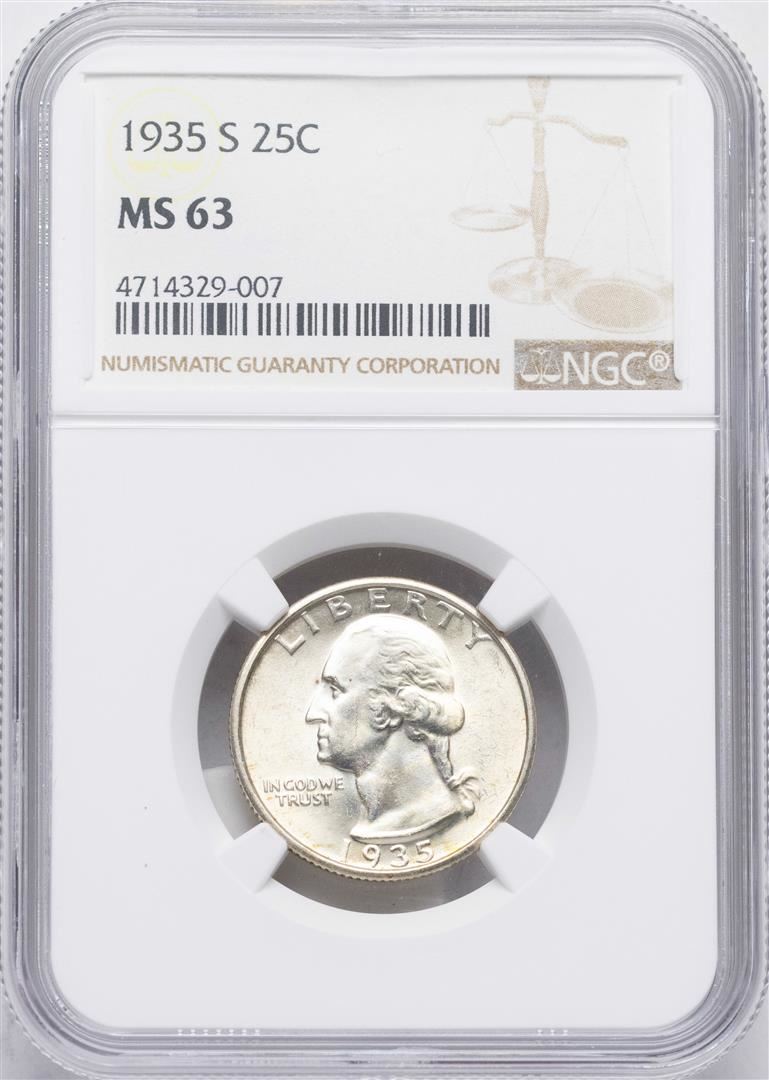 One 1935-S Washington Quarter Coin NGC MS63. NGC Certified.