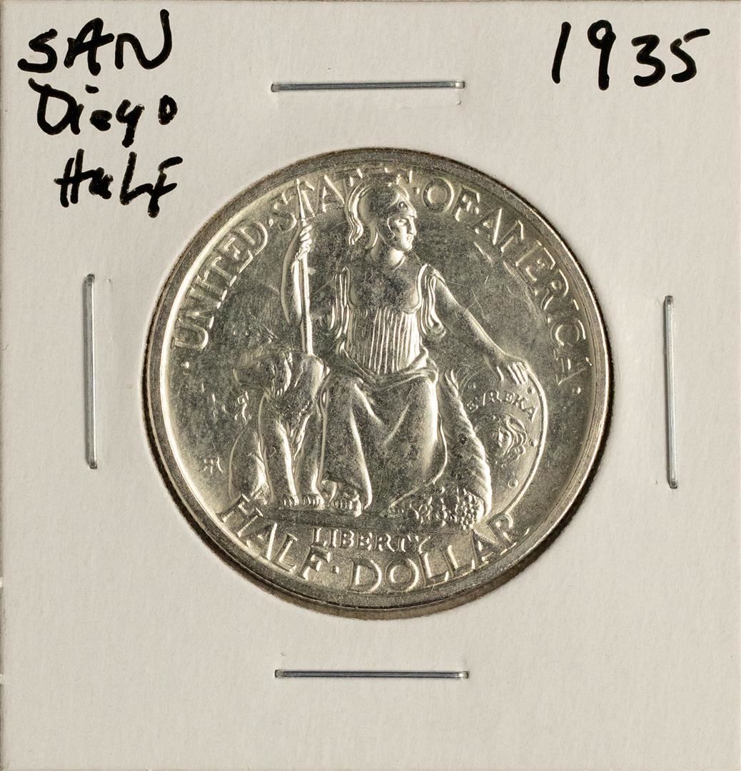 One 1935 San Diego International Exposition Commemorative Half Dollar Coin.