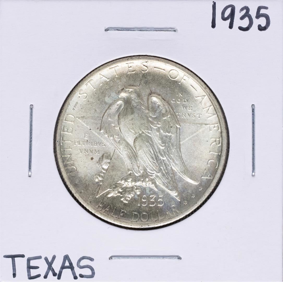 One 1935 Texas Independence Centennial Commemorative Half Dollar Coin.