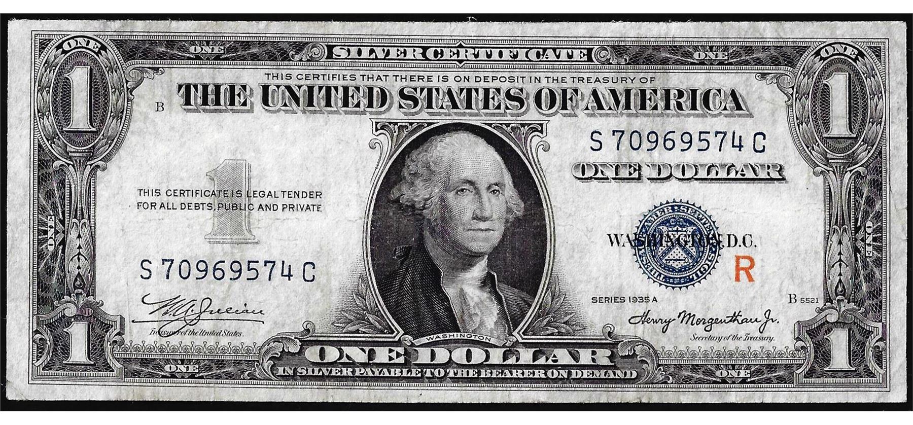 One 1935A $1 Experimental "R" Silver Certificate Note.