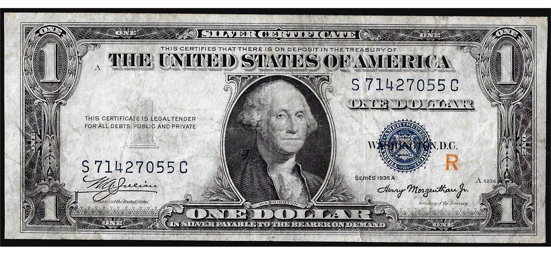 One 1935A $1 Experimental "R" Silver Certificate Note.