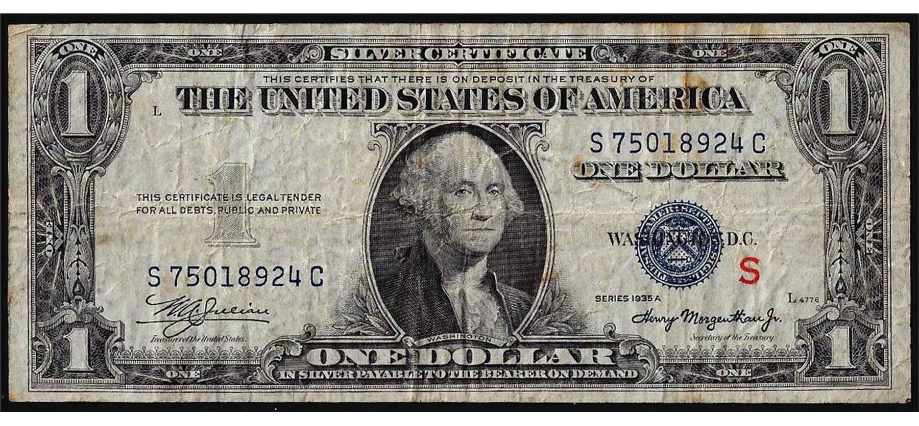 One 1935A $1 Experimental "S" Note Silver Certificate.