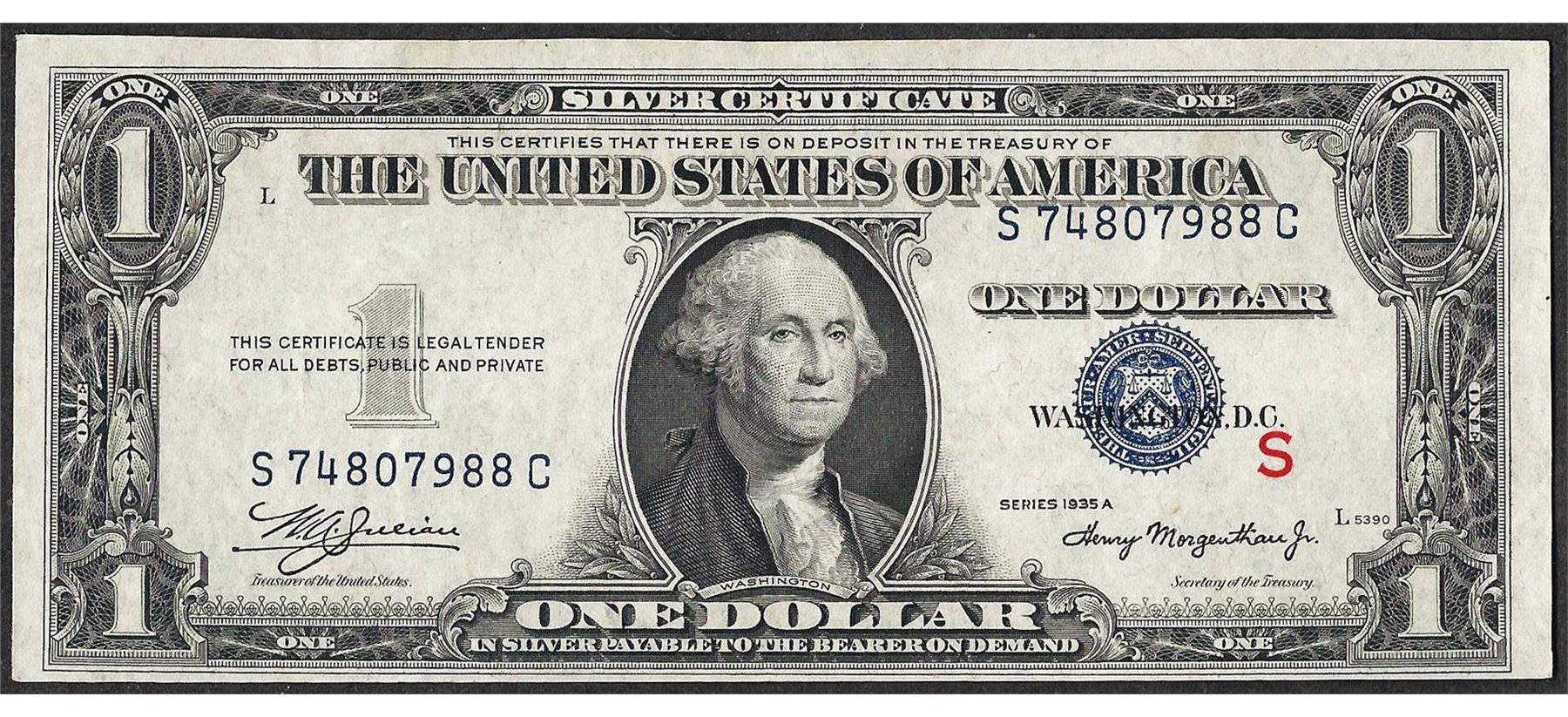 One 1935A $1 Experimental "S" Silver Certificate Note.