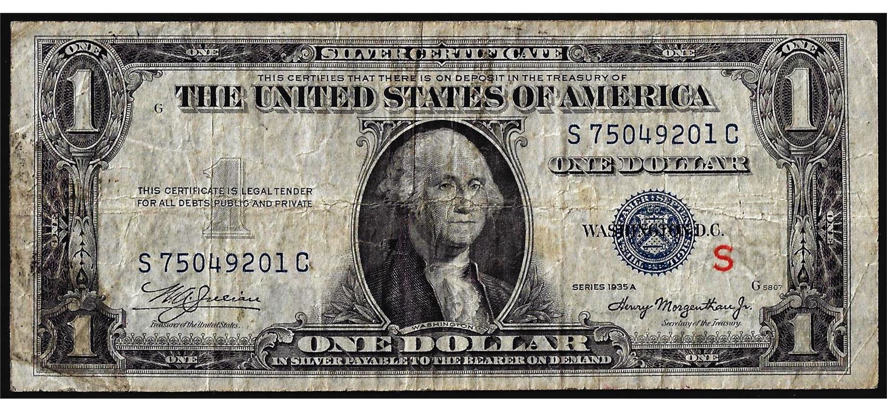 One 1935A $1 Experimental "S" Silver Certificate Note.