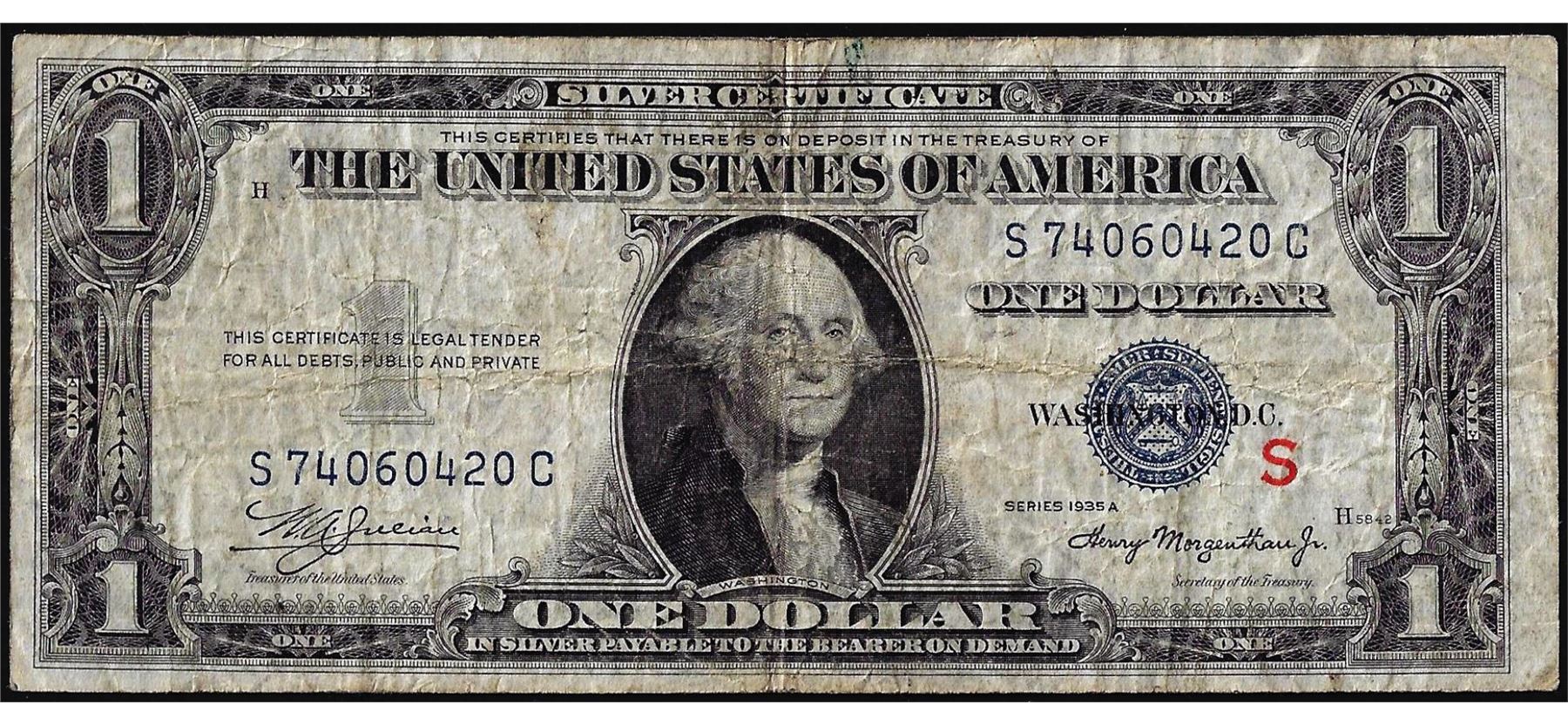 One 1935A $1 Experimental "S" Silver Certificate Note.