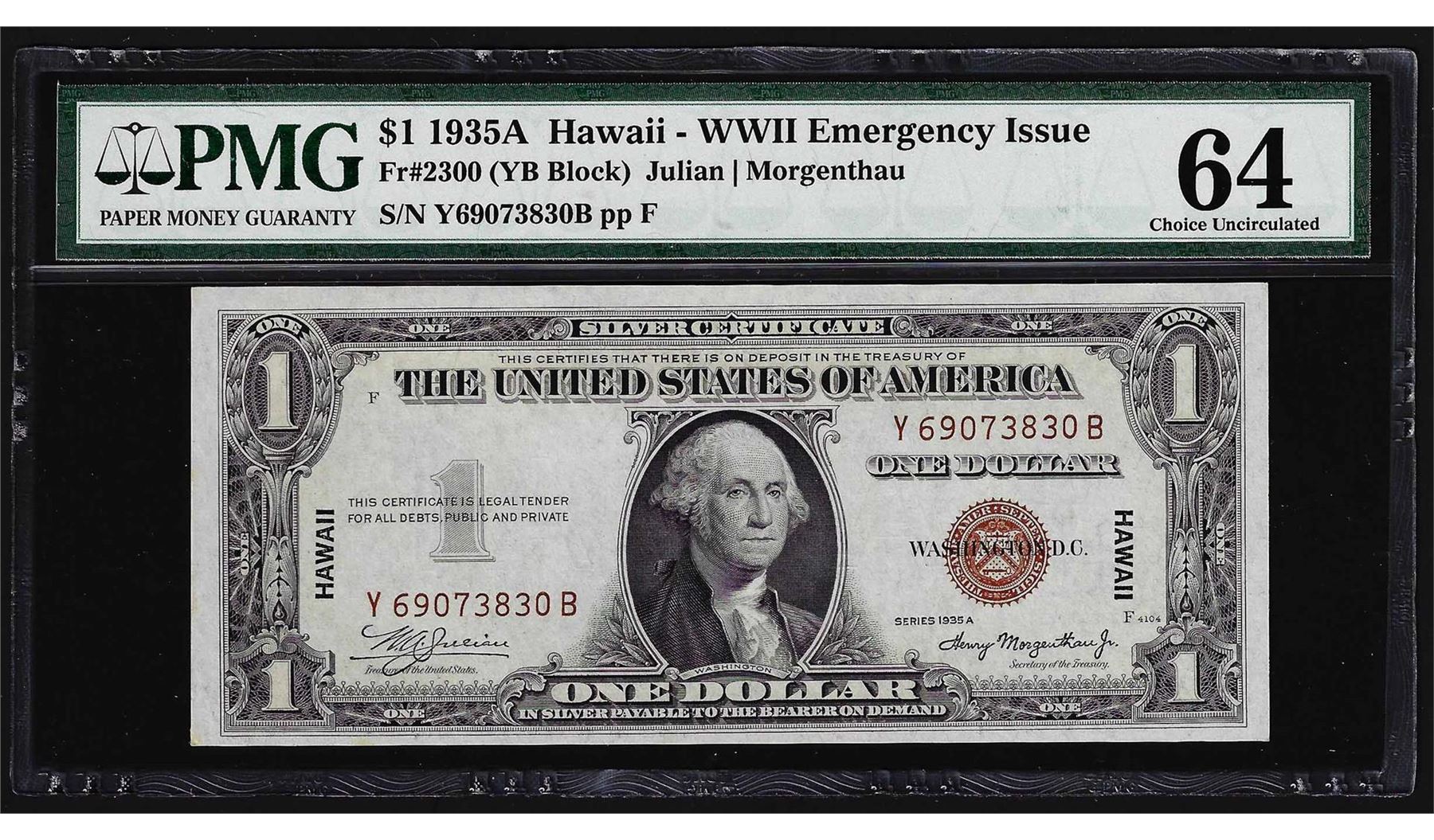 One 1935A $1 Hawaii Silver Certificate Note PMG Choice Uncirculated 64. PMG Certified.