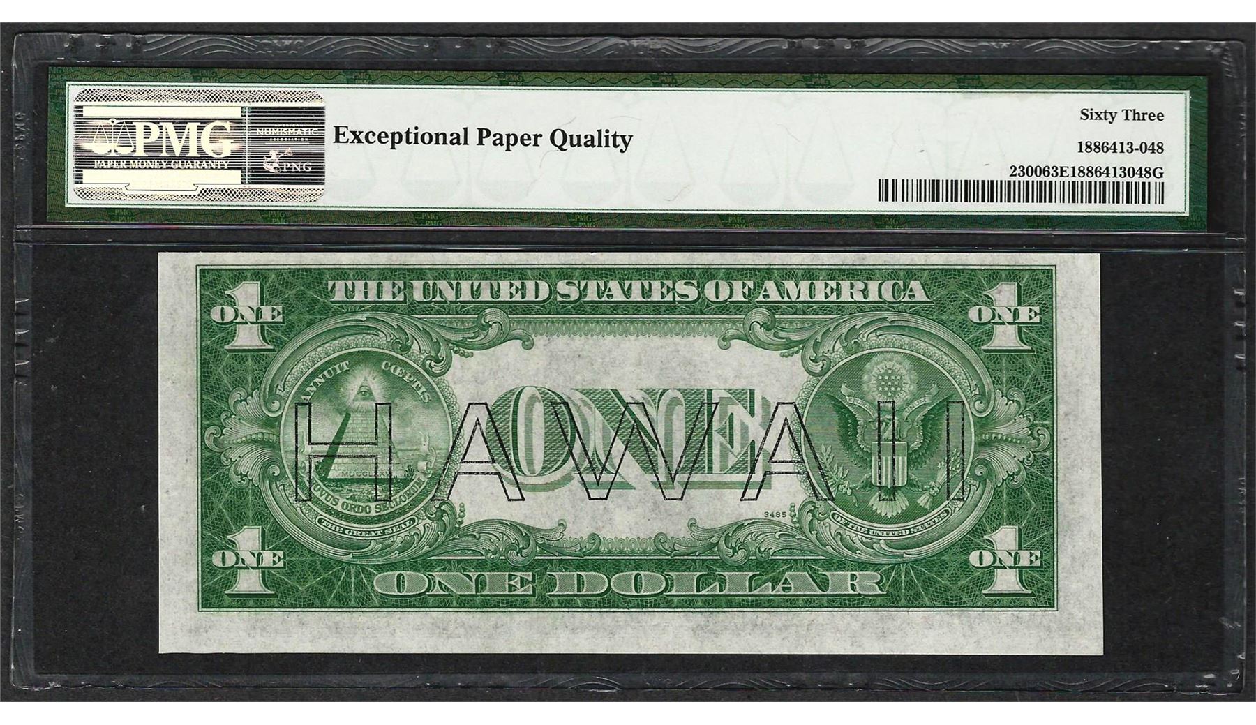 One 1935A $1 Hawaii Silver Certificate WWII Emergency Note PMG Choice Uncirculated 63EPQ. PMG Certified.