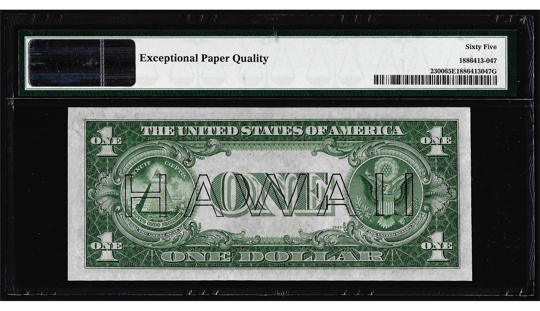 One 1935A $1 Hawaii Silver Certificate WWII Emergency Note PMG Gem Uncirculated 65EPQ. PMG Certified.