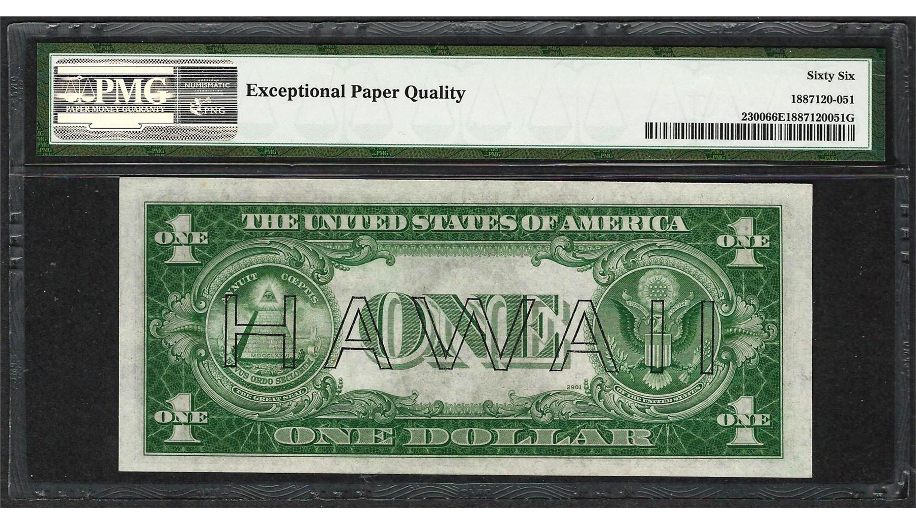 One 1935A $1 Hawaii Silver Certificate WWII Emergency Note PMG Gem Uncirculated 66EPQ. PMG Certified.