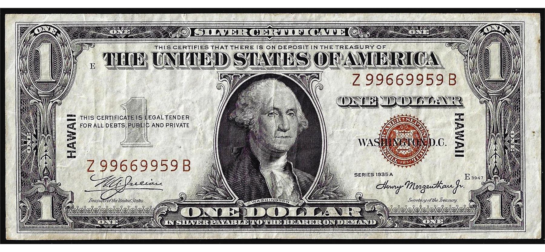 One 1935A $1 Hawaii Silver Certificate WWII Emergency Note Scarce ZB Block.