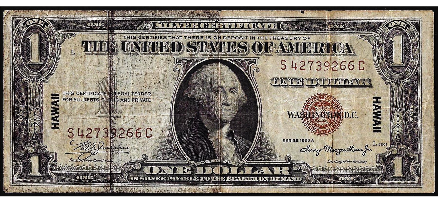 One 1935A $1 Hawaii WWII Emergency Issue Silver Certificate Note.