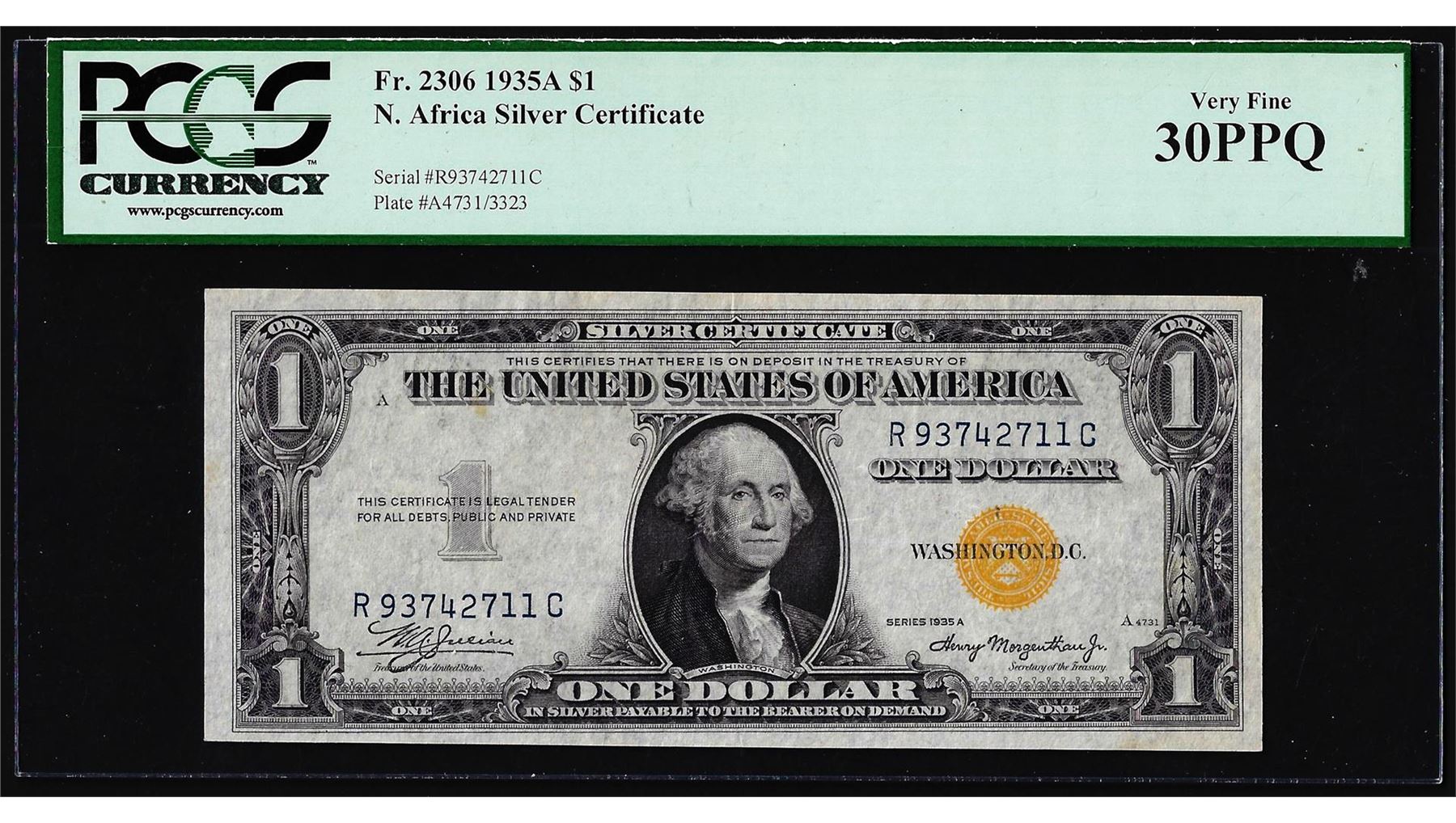 One 1935A $1 North Africa WWII Emergency Silver Certificate Note PCGS Very Fine 30PPQ.