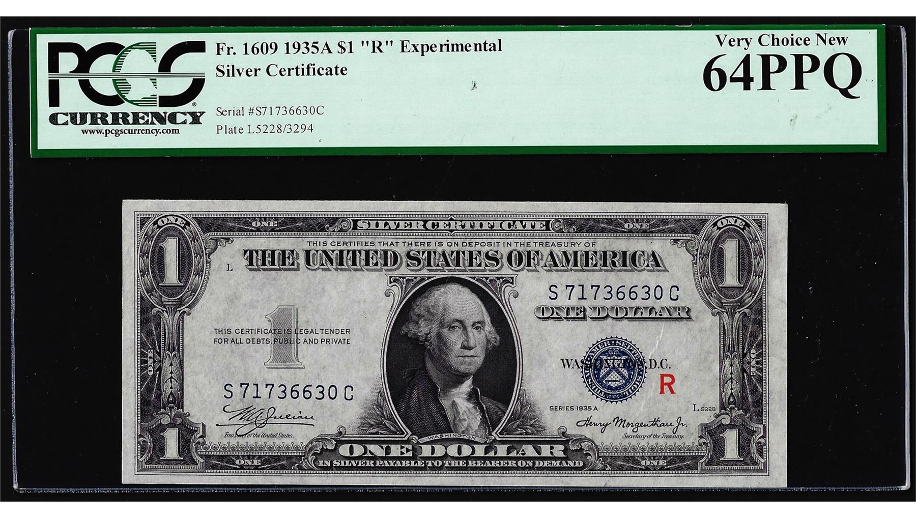 One 1935A $1 "R" Experimental Silver Certificate Note Fr.1609 PCGS Very Choice New 64PPQ. PCGS Graded.