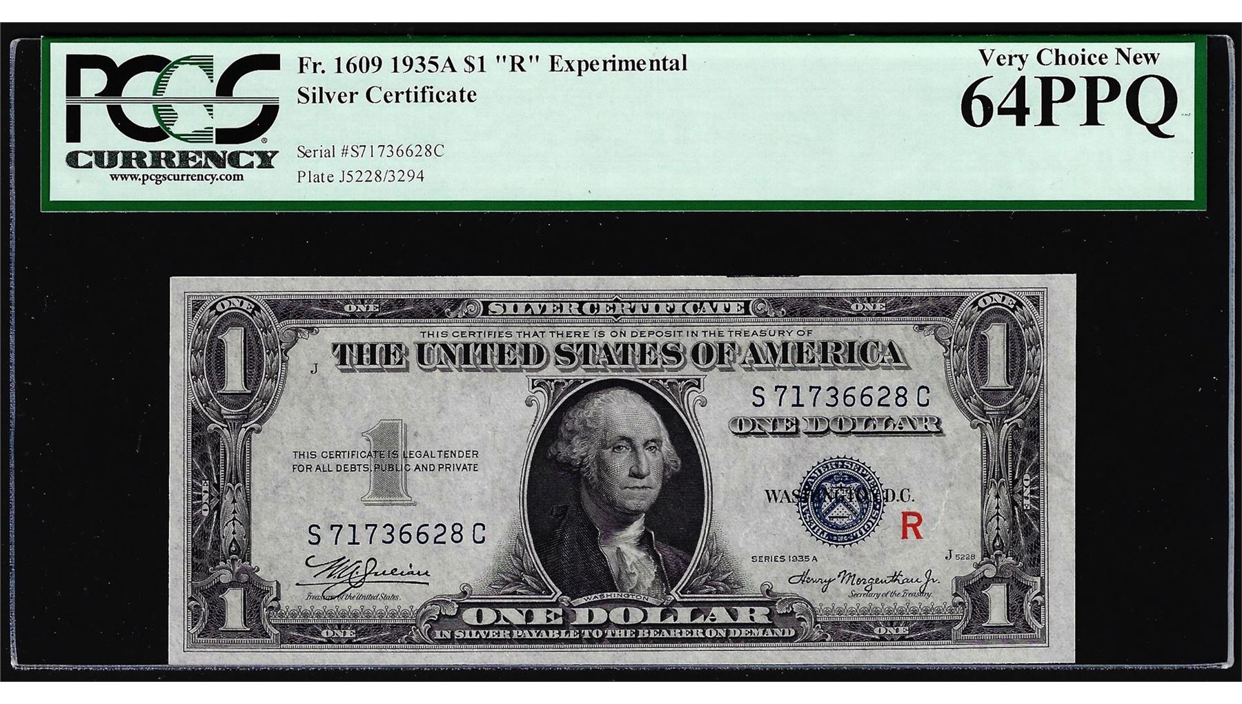 One 1935A $1 "R" Experimental Silver Certificate Note Fr.1609 PCGS Very Choice New 64PPQ. PCGS Graded.