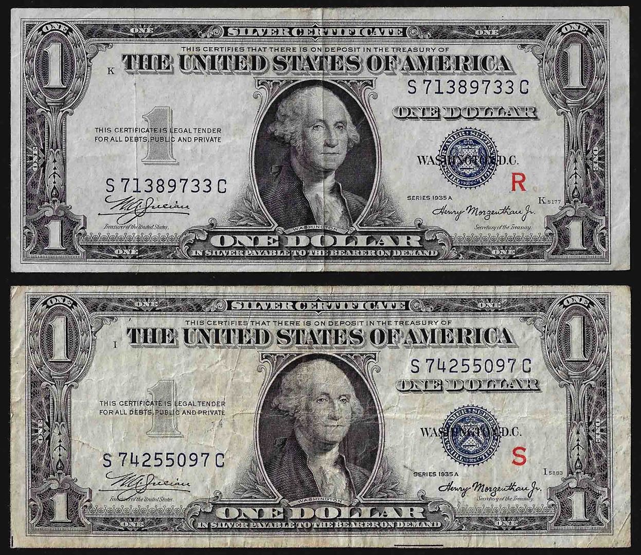 One 1935A $1 R & S Pair of Experimental Silver Certificate Notes.