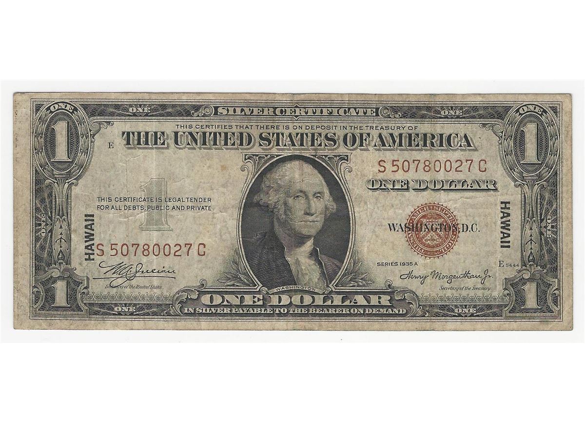 One 1935A $1 Silver Certificate Emergency Hawaii Note.