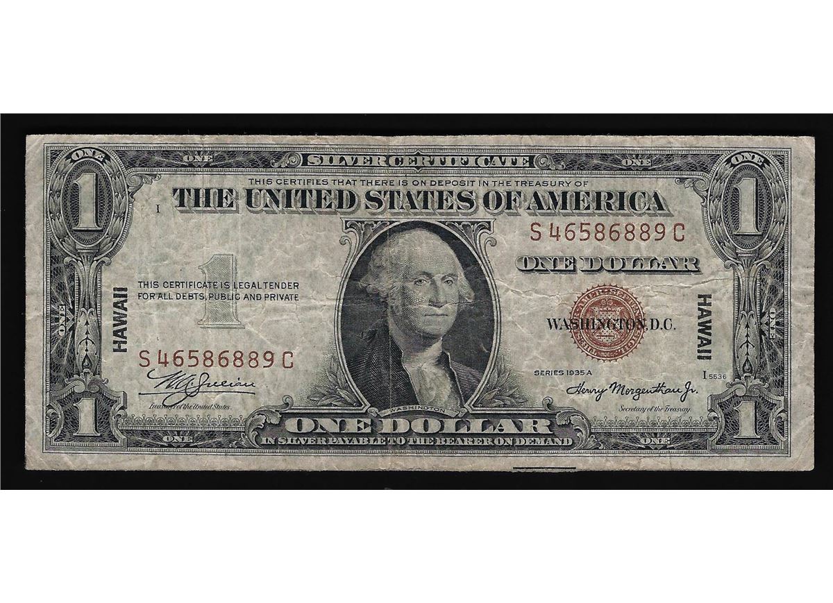 One 1935A $1 Silver Certificate Emergency Hawaii Note.