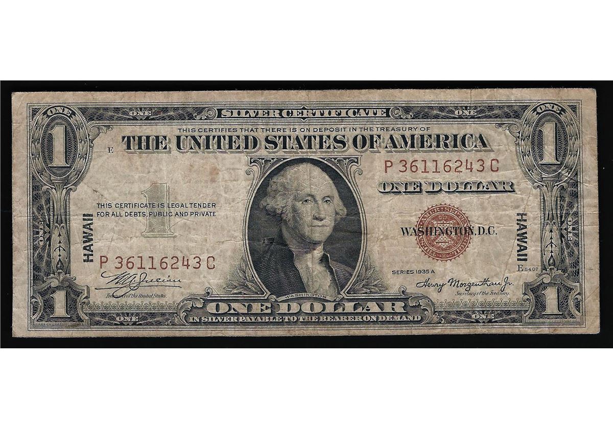 One 1935A $1 Silver Certificate Emergency Hawaii Note.