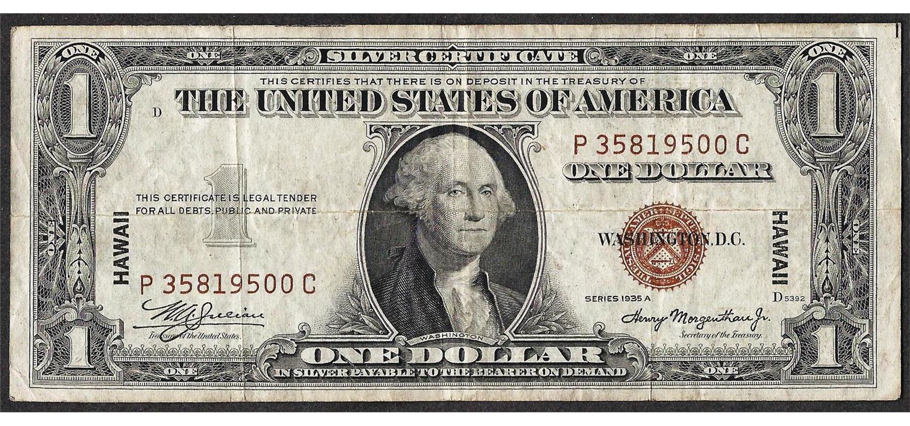 One 1935A $1 Silver Certificate Emergency Hawaii Note.