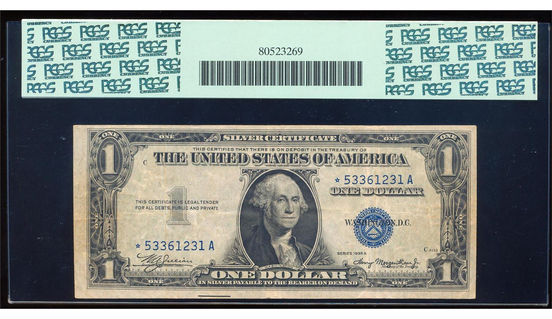 One 1935A $1 Silver Certificate STAR Note Inverted Back Printing ERROR PCGS Very Fine 30. PCGS Graded.