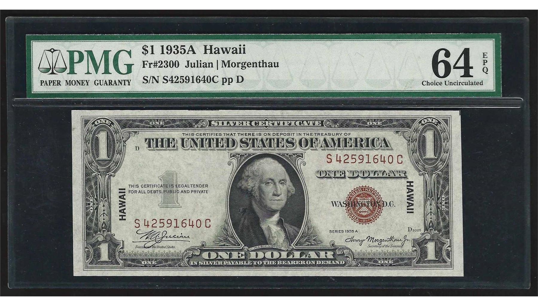 One 1935A $1 Silver Certificate WWII Emergency Hawaii Note PCGS Very Choice New 64PPQ. PMG Certified.