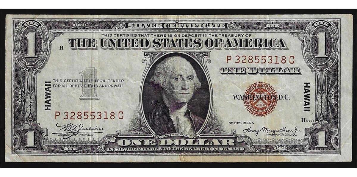 One 1935A $1 Silver Certificate WWII Emergency Hawaii Note.