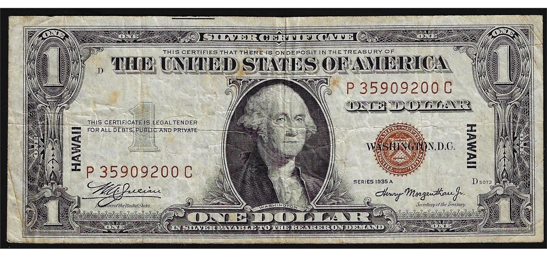 One 1935A $1 Silver Certificate WWII Emergency Hawaii Note.