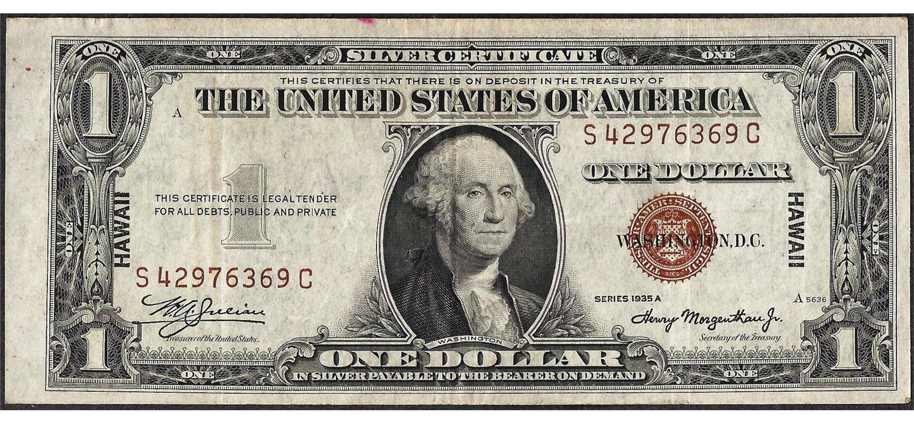 One 1935A $1 Silver Certificate WWII Emergency Hawaii Note.