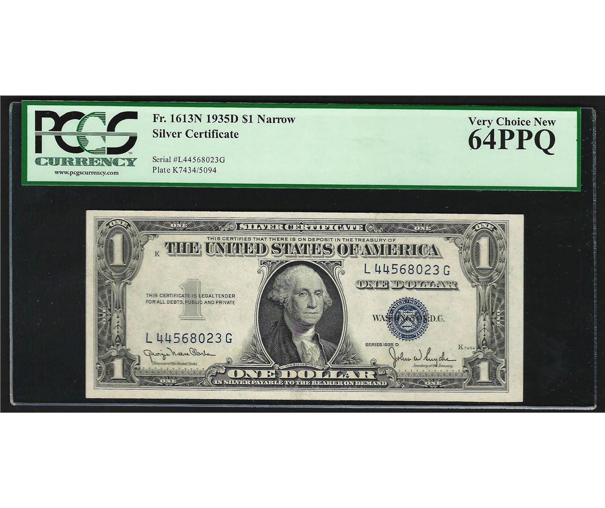 1935D $1 Narrow Silver Certificate Note PCGS Very Choice New 64PPQ