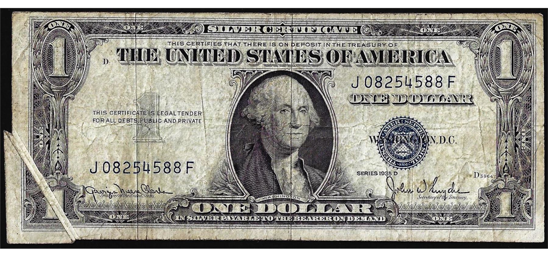 One 1935D $1 Silver Certificate Note Gutter Fold ERROR.
